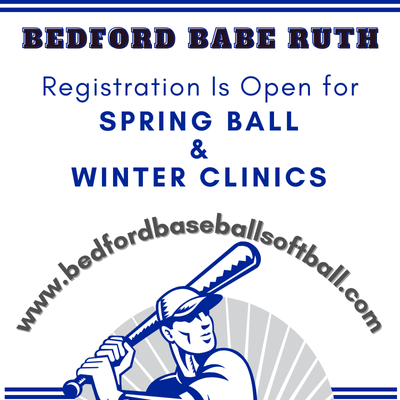 Spring registration is open for baseball and softball. Players ages 5+ (as of 9/1/24) in Bedford/Hanscom can sign up today